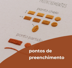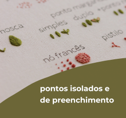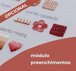 Nele, vamos explorar com mais profundidade vários pontos de preenchimento, ampliar o repertório experimentando bordá-los com diferentes quantidade de fios, fazer combinações de pontos, criar relevos e estudar vários exemplos de aplicação.